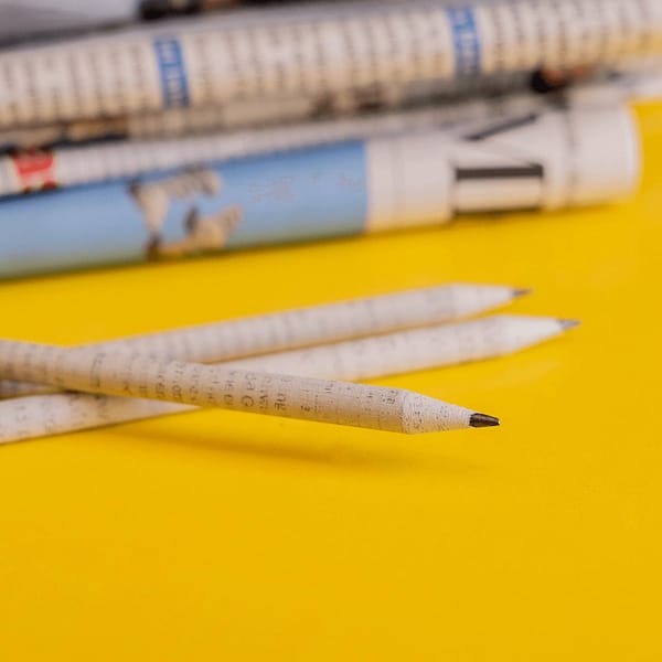 These newspaper pencils are 100% biodegradable and 100% compostable.